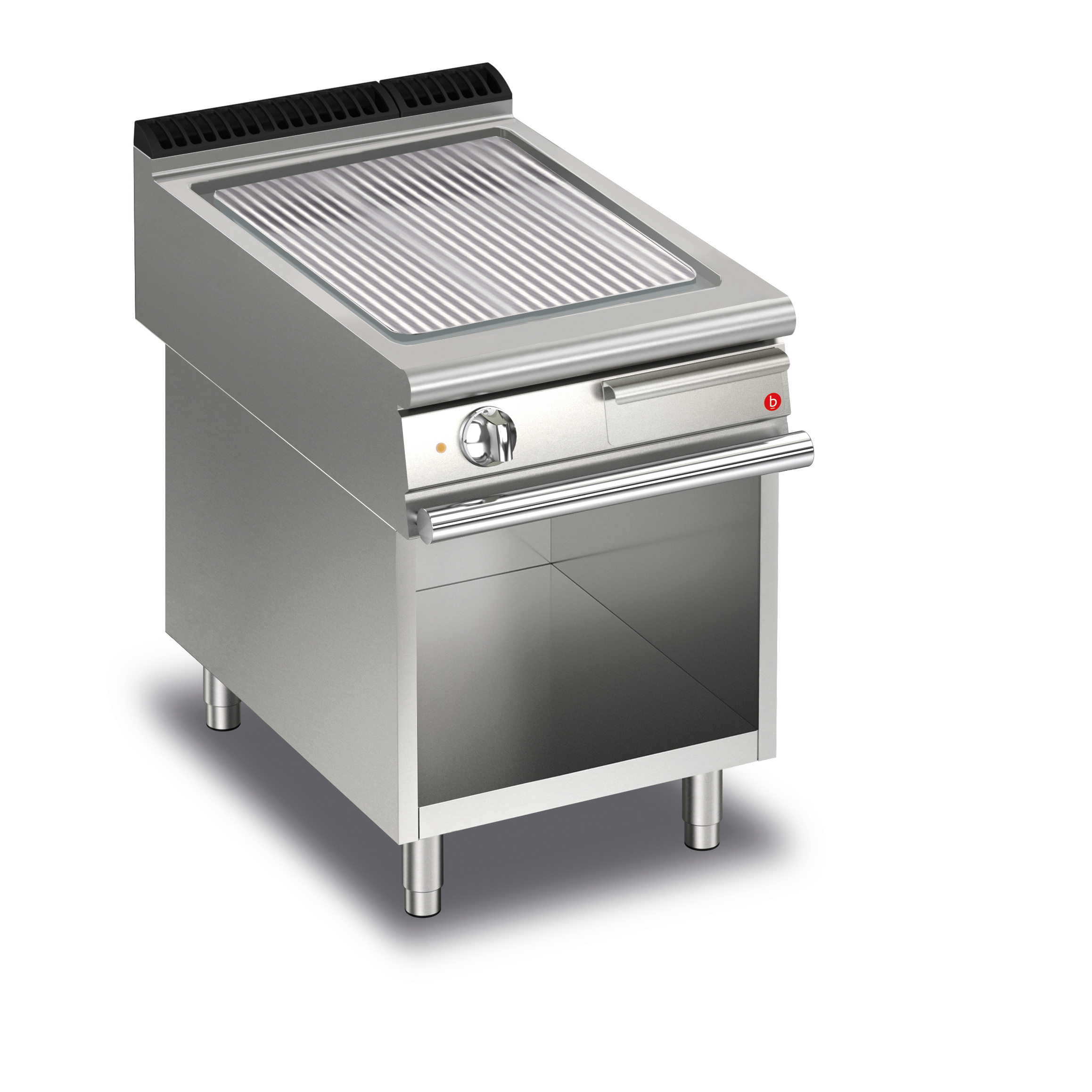 Elektrisk stekhäll BARON Q70SFTV/E613 med räfflad stekplatta i AISI430 stål, på öppet stativ, 600x700mm, 5,4kW