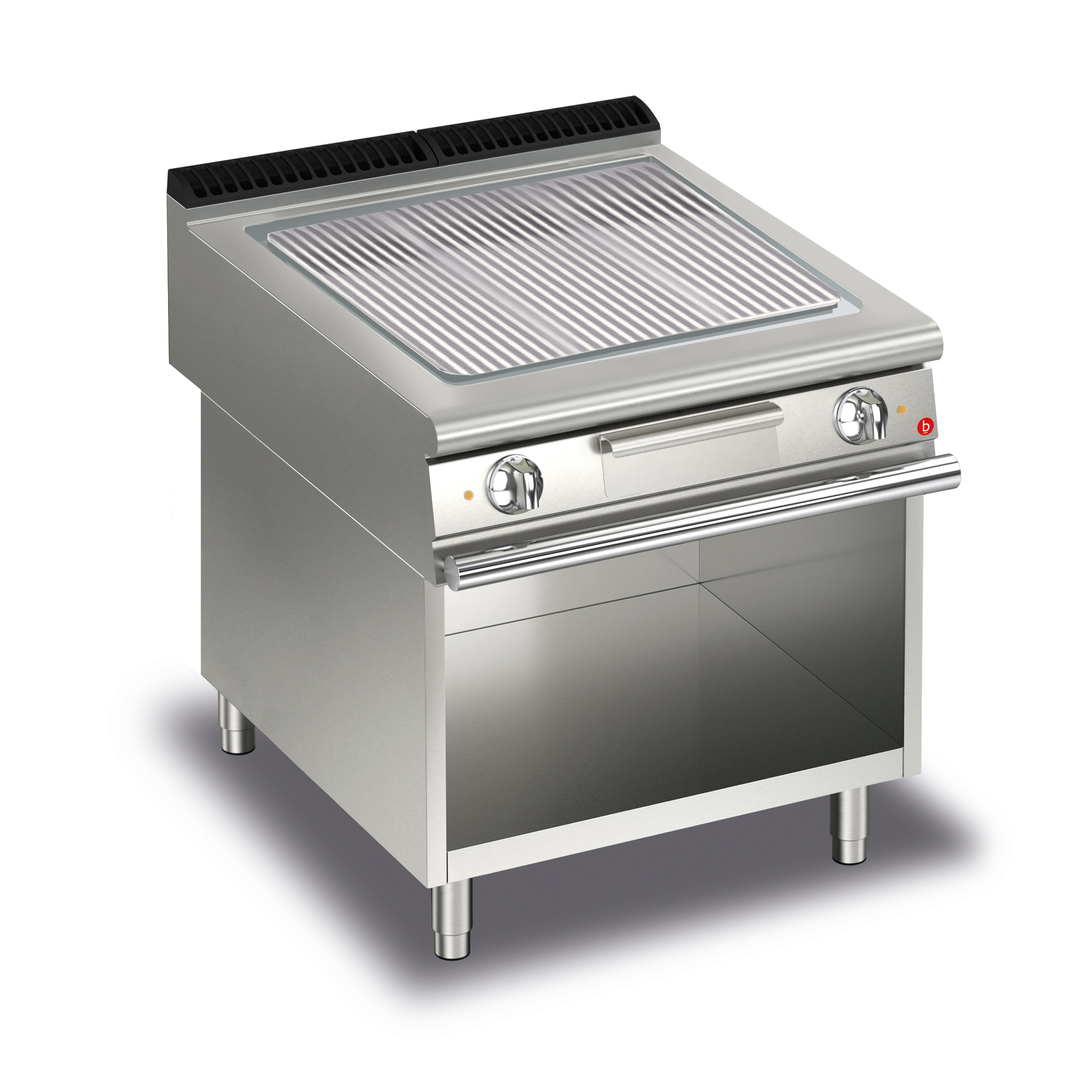 Elektrisk stekhäll BARON Q70SFTV/E815 med räfflad kromat stekplatta, på öppet stativ, 800x700mm, 10,8kW