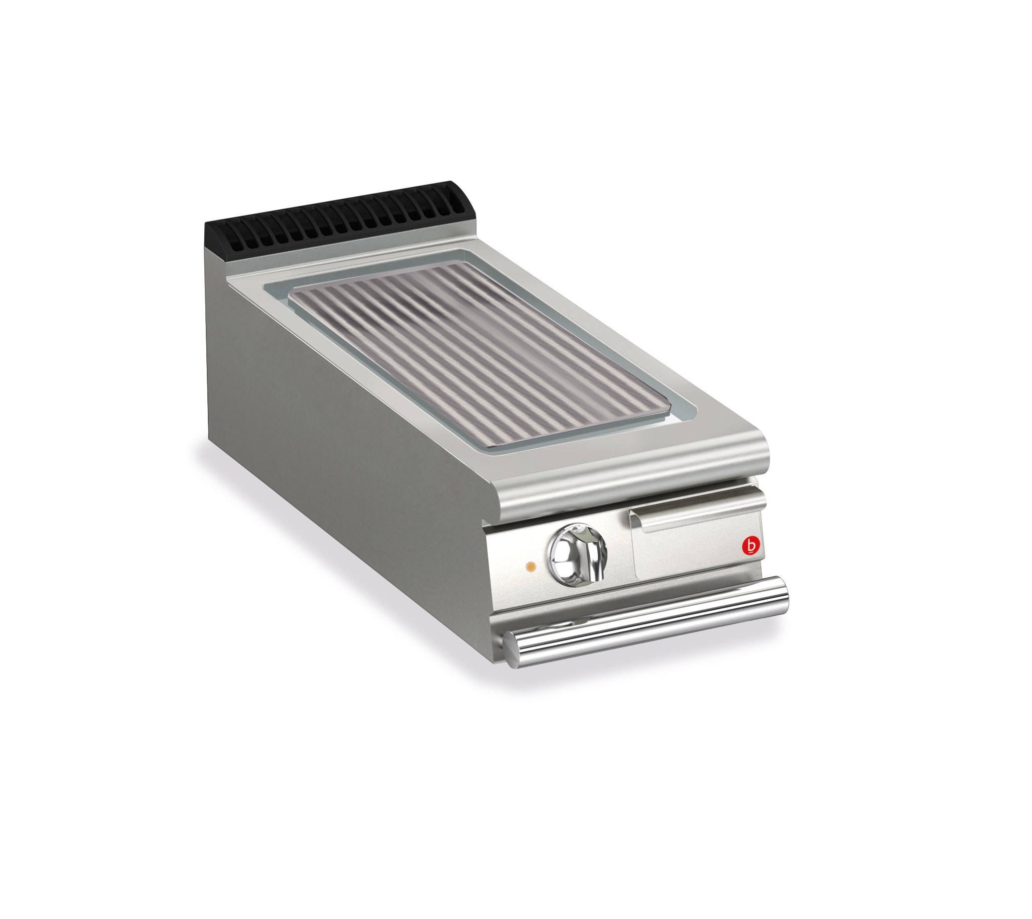 Elektrisk stekhäll BARON Q90SFT/E413 med räfflad stekplatta i AISI430 stål, 400x900mm, 5kW