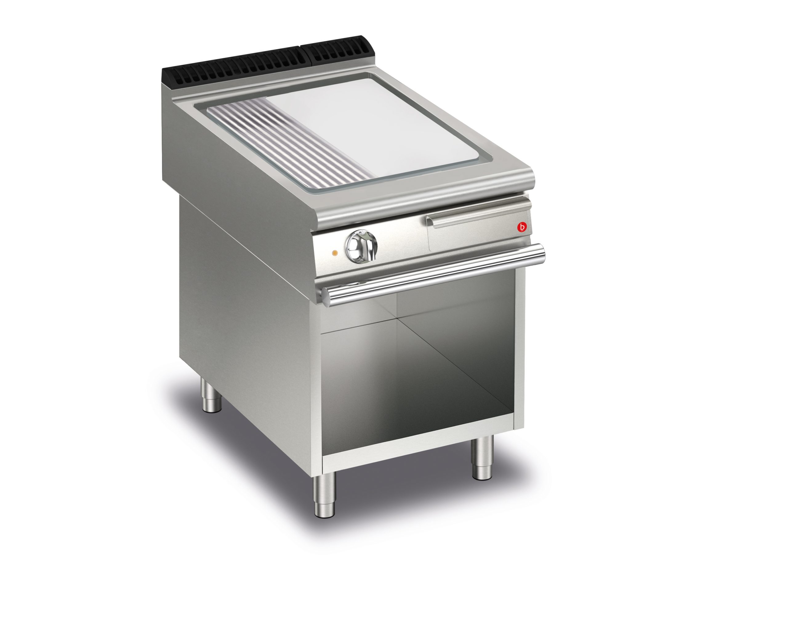 Elektrisk stekhäll BARON Q90SFTV/E823 med slät & 1/3 räfflad stekplatta i AISI430 stål, på öppet stativ, 800x900mm, 15kW