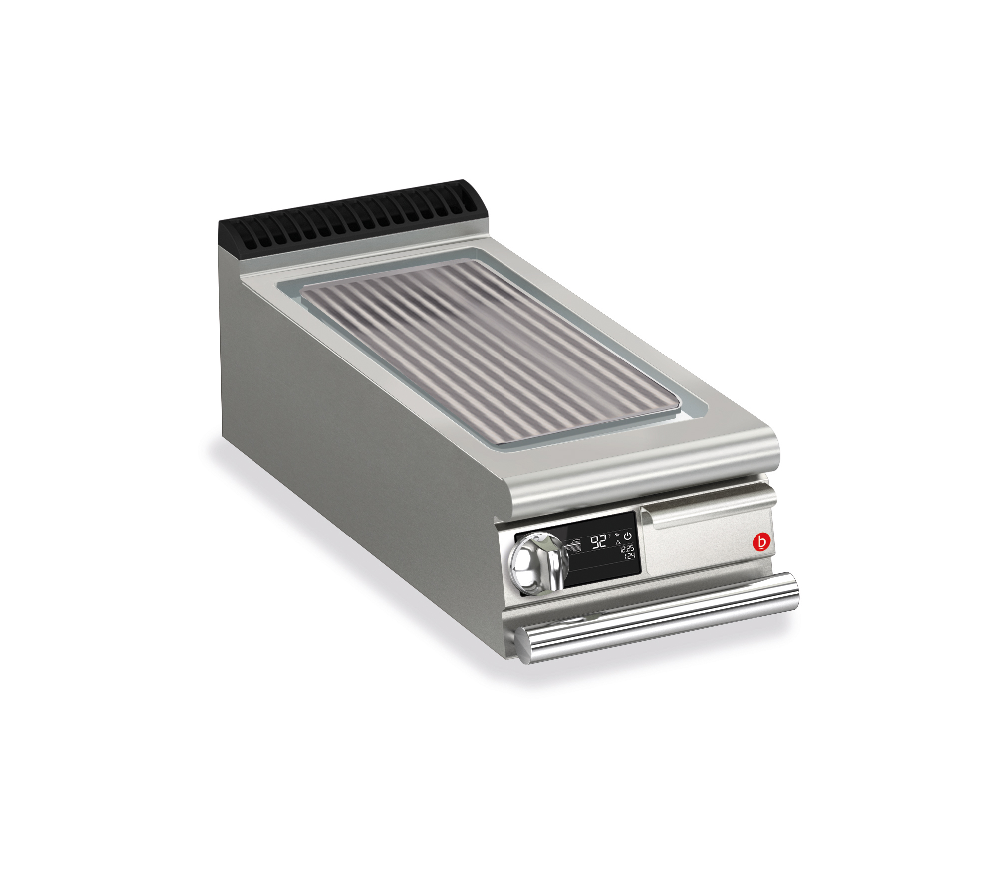 Elektrisk stekhäll BARON QT90SFT/E413-T4W med räfflat stekplatta i AISI430 stål, 400x900mm, 7,5kW, Touchscreen