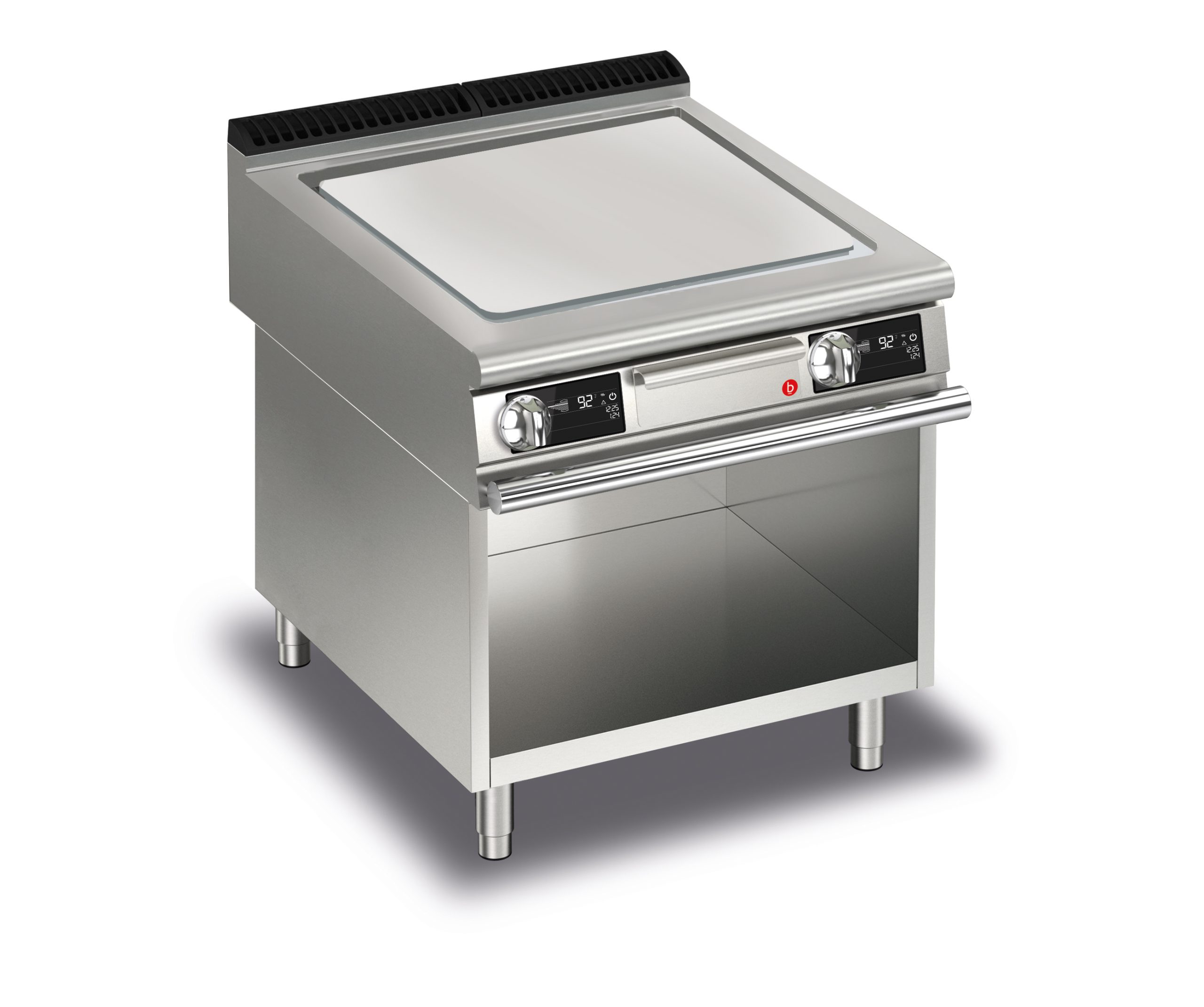 Elektrisk stekhäll BARON QT90SFTV/E803-T4W med slät stekplatta i AISI430 stål, på öppet stativ, 800x900mm, 15kW, Touchscreen