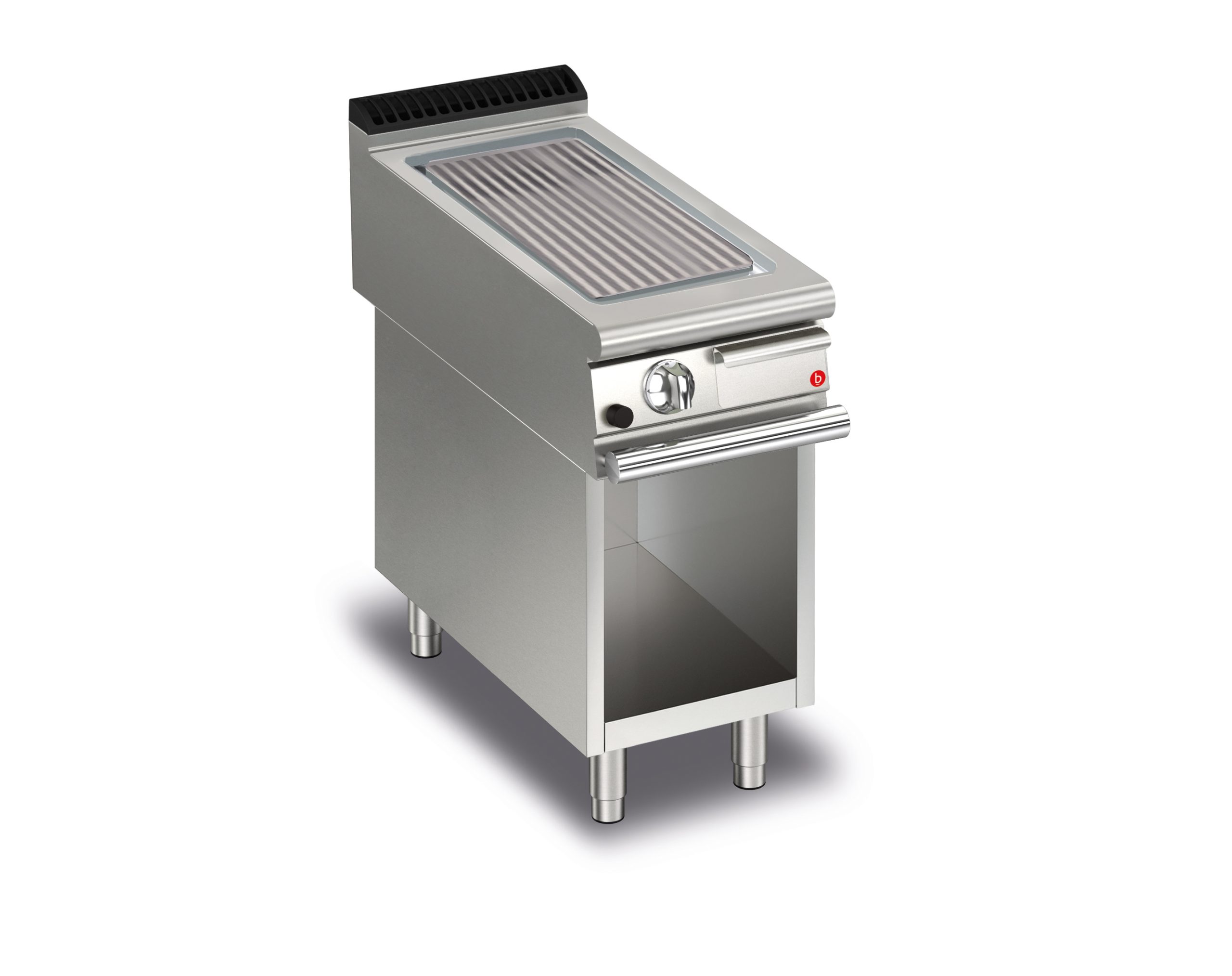Gas stekhäll BARON Q90SFTTV/G415 med räfflad kromat stekplatta, på öppet stativ, 400x900mm, 10kW