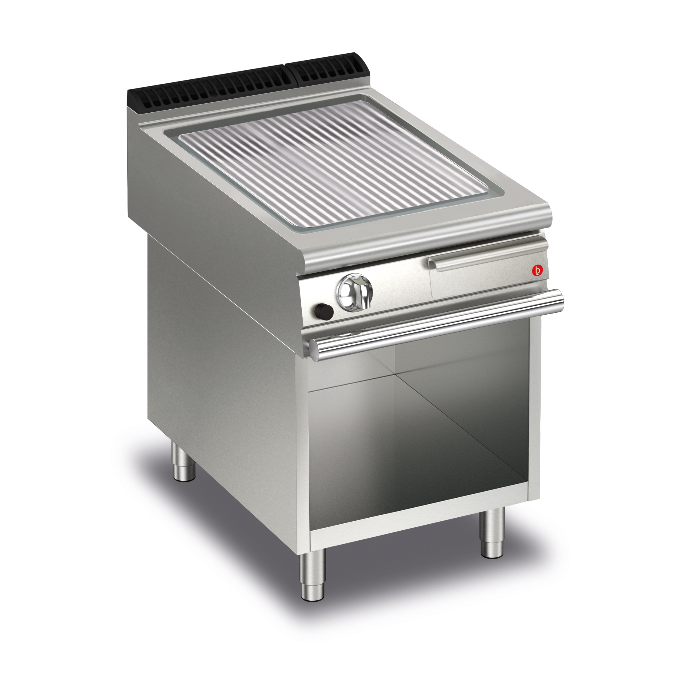 Gas stekhäll BARON Q90SFTTV/G613 med räfflad stekplatta, i AISI430 stål, på öppet stativ, 600x900mm, 14kW