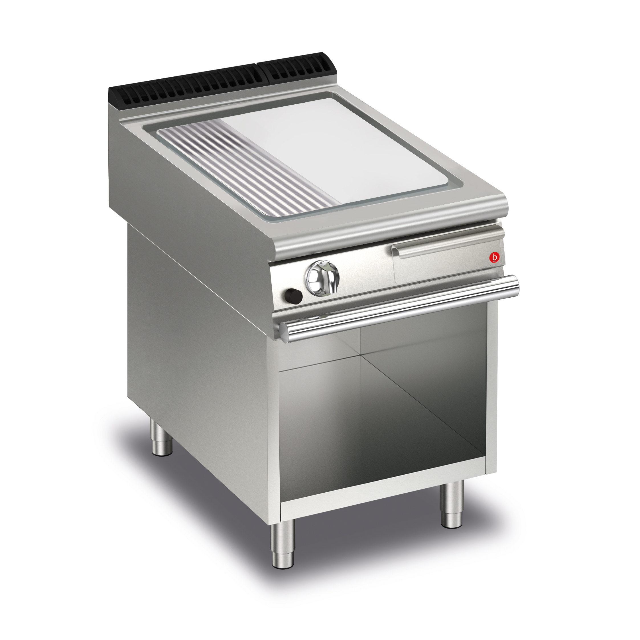 Gas stekhäll BARON Q90SFTV/G623 med slät & 1/3 räfflad stekplatta, i AISI430 stål, på öppet stativ, 60x9000mm, 11kW